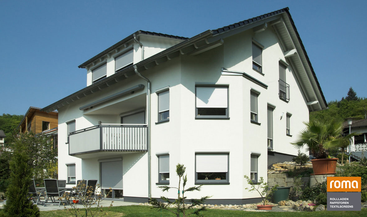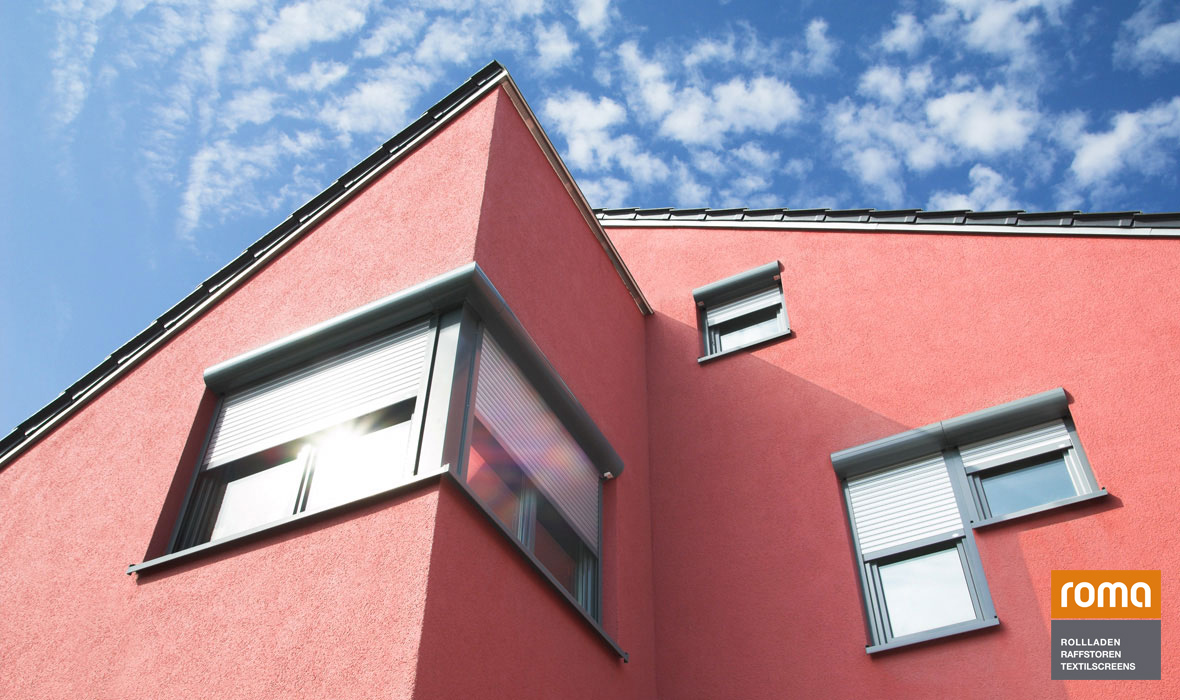 ROMA Aufsatzraffstoren finden gleichermaßen im Privat- und Objektbau als auch im Neubau oder in der Sanierung Verwendung. Fenster und Aufsatzraffstoren bilden eine Einheit, denn die Raffstoren werden direkt auf das Fenster montiert und in einem Arbeitsgang eingesetzt. Auf diese Weise verschwinden sie später praktisch unsichtbar in der Fassade. Die Sonnenschutzsysteme passen auf jeden Fenstertyp und schließen perfekt ab. Zugluft und damit Wärmeenergieverlust sind weitestgehend ausgeschlossen. Die hochwertigen Kunststoffbauteile sind witterungs- und UV-beständig.